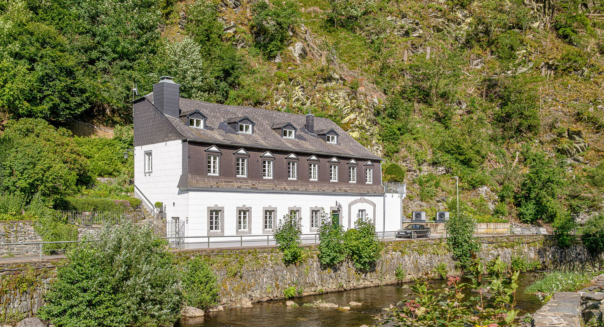 Behaglichkeit und Komfort, Wohlfühlatmosphäre und Design, Denkmal und Moderne, Ruhe und Aktivität. All das vereint der Weberwinkel, ein einzigartiges, offen gestaltetes Ferienhaus mit großzügigem Saunabereich und tollem Garten direkt am Ufer der Rur. Die tollen Fachwerkhäuser, prächtigen Tuchmachervillen, engen Gassen und die über der Stadt thronende Burg verleihen der Altstadt Monschau eine ganz besondere Atmosphäre. Viele kleine Geschäfte, Cafés und Restaurants laden zum Verweilen ein. Monschau liegt inmitten der reizvollen Nordeifel. Für Naturliebhaber halten der Nationalpark Eifel, der Rursee und das Hohe Venn beeindruckende Landschaften bereit, die beste Bedingungen zum Wandern, Mountainbiking und für viele andere Aktivitäten bieten. Im Dreiländereck Deutschland-Belgien-Niederlande sind die geschichtsträchtigen, lebhaften Städte Aachen, Lüttich und Maastricht ideale Ziele für ausgiebige Shopping- und Sightseeing-Touren.